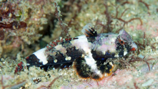 幼魚;撮影 2013年11月:和歌山県紀伊大島須江 内浦 水深-4m 大きさ約30mm幼魚;撮影 2008年7月:和歌山県串本町 串本DP前 水深-5m 大きさ約20mm コウワンテグリ 学名 Synchiropus Ocellatus ス...