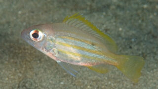 幼魚;撮影 2011年10月:和歌山県紀伊大島須江 内浦 水深-16m 大きさ50mm幼魚;撮影 2012年12月:和歌山県紀伊大島須江 内浦 水深-15m 大きさ40mm ニセクロホシフエダイ 学名 Lutjanus fulviflamm...