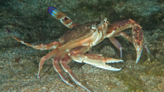 ワタリガニ科 イボガザミ イボガザミ 学名 Portunus baani 十脚目 / カニ下目 / ワタリガニ科 / ガザミ属撮影 2011年2月:和歌山県紀伊大島須江 白野 水深-5m 大きさ甲幅約80mm生息域 千葉県~奄美大島、韓国、中国北部など。内湾... 2025.10.16 ワタリガニ科