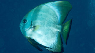 撮影 2017年9月:フィリピン ナルスアン島 水深-2m 大きさ約300mm幼魚;撮影 2010年10月:三重県尾鷲市三木浦 ナナコのダボ 水深-9m 大きさ高さ約200mm ミカヅキツバメウオ 学名...