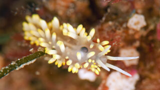 コガネミノウミウシ科 コガネミノウミウシ コガネミノウミウシ 学名 Piseinotecus.Sp 枝鰓亜目 / ミノウミウシ小目 / コガネミノウミウシ科 /コガネミノウミウシ属撮影 2012年6月:和歌山県串本町 住崎 水深-12m 大きさ約15mm生息域 千葉県~琉球列島... 2026.03.18 コガネミノウミウシ科