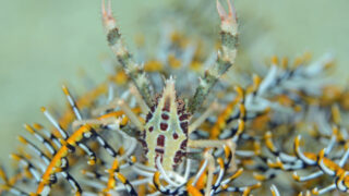 ヒメヨコバサミ属の1種? 学名 Paguristes Sp? 十脚目 / ヤドカリ下目 / ヤドカリ科 / ヒメヨコバサミ属撮影 2017年9月:フィリピン マクタン島 水深-25m 大きさ不明 (鋏脚は約5mm)生息域 フイリピン他、不明...