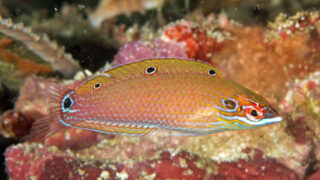 ベラ科 ホクロキュウセン ホクロキュウセン 学名 Halichoeres melasmapomus スズキ目 / ベラ科 / キュウセン属雌;撮影 2015年1月:フィリピン カビラオ島 水深-20m 大きさ約70mm英名 Cheekspot wrasse生息域 小... 2025.09.29 ベラ科