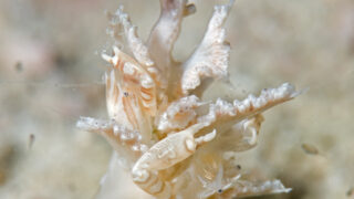 ハゼ科 ヤツシハゼ属の1種 ヤツシハゼ属の1種 学名 Vanderhorstia Sp スズキ目 / ハゼ科 / ヤツシハゼ属撮影 2013年6月:フィリピン セブ島 水深-40m 大きさ約50mm英名 不明 生息域 フィリピン、インドネシアなど。珊瑚礁域近くの水深が... 2025.09.27 ハゼ科