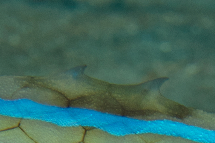 眼の上部に2本、背中の隆起部の頂点付近に2本の棘が有る事ですが、今回、