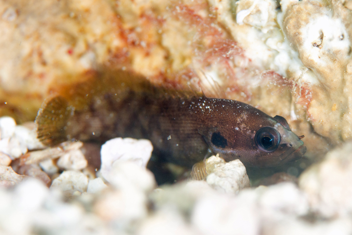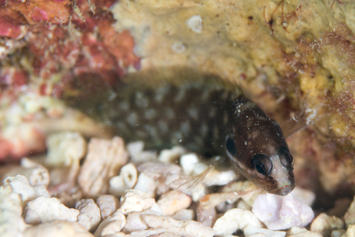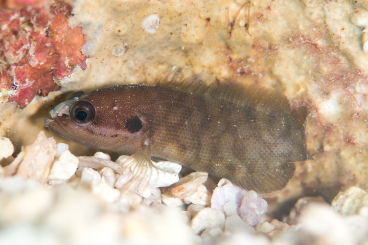 礁斜面などで死サンゴ片の下やサンゴの根の隙間などに隠れる様に