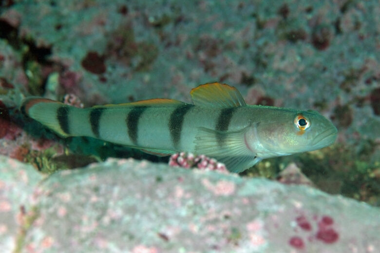 水深が 3m~45mの岩礁性海岸の礫砂底や、中層で少数匹の群れを