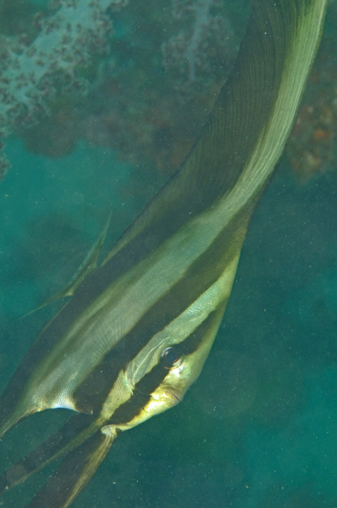 幼魚の頃は背鰭と臀鰭が著しく伸長し、背鰭の先端から臀鰭の先端まで