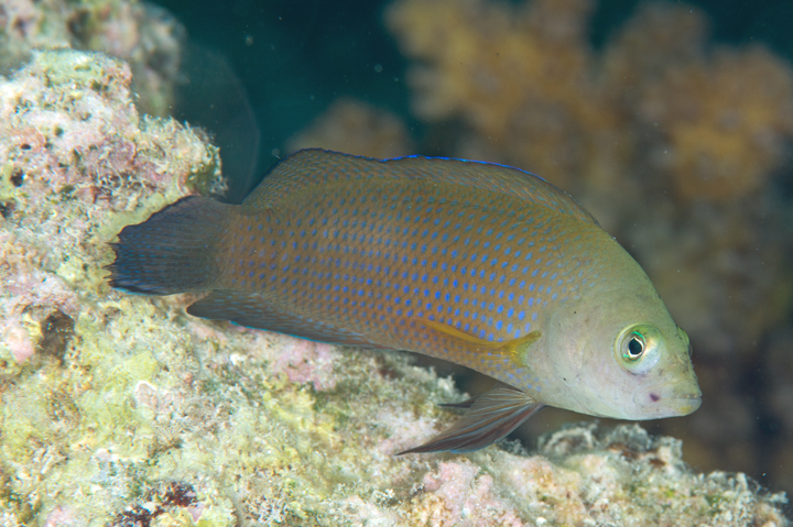 礁斜面などに単独で生息しており、タイドプールでも観察されます。