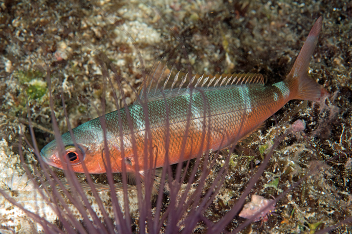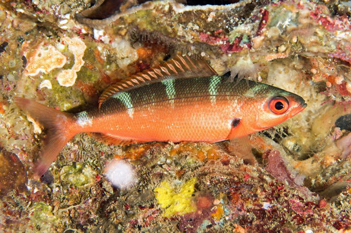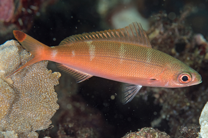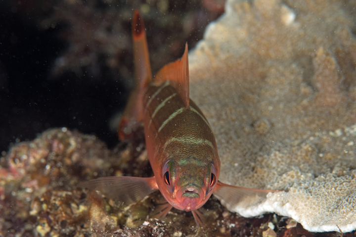 珊瑚礁域にて水深が 1m~100mほど、単独もしくは同属の他種と