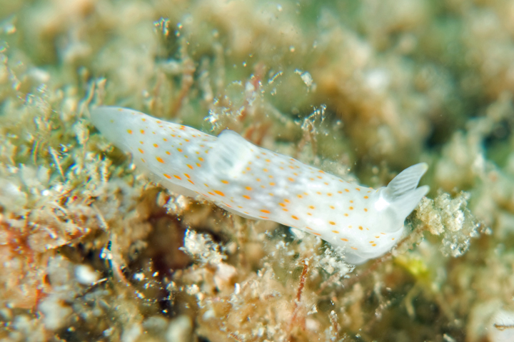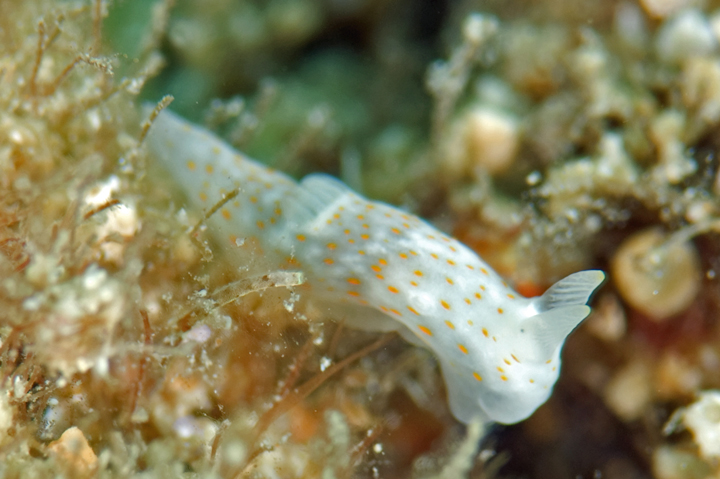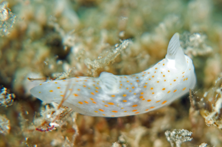 本種は キヌハダウミウシ の名が付く様に他のウミウシ類 ( ゴクラク